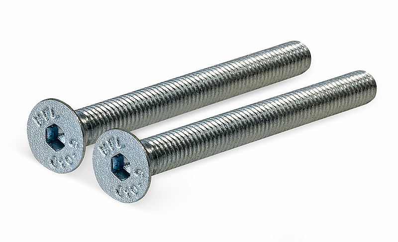 AG0306 staal gegalvaniseerd bout DIN7991 ten behoeve van veiligheidsrozetten met kerntrek tot een deurdikte van 74mm en 54mm en beschikbaar in maat 2xM5x60mm en 2xM5x80mm