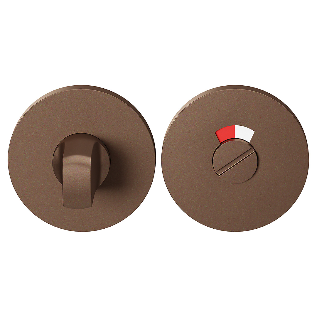 GPF0903VRA2 toiletgarnituur 53x6mm stift 8mm Bronze Blend met rood/wit indicator. De bronzen kleur van de finish bronze blend wordt middels een poedercoating aangebracht op het basismateriaal roestvast staal. De metallic finish geeft een stijlvolle uitstraling aan het deurbeslag.