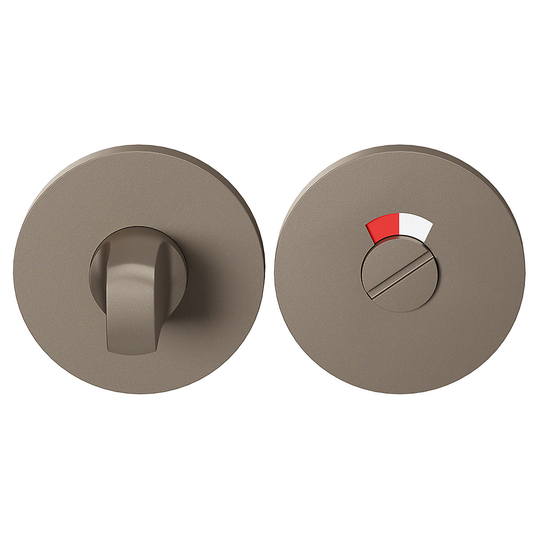 GPF0903VRA3 toiletgarnituur 53x6mm stift 8mm Mocca Blend met rood/wit indicator. De bruin/beige kleur van de finish mocca blend is onderdeel van de Anastasius Collectie. De mokkakleur ontstaat door een metallic poedercoating op het RVS deurbeslag aan te brengen.