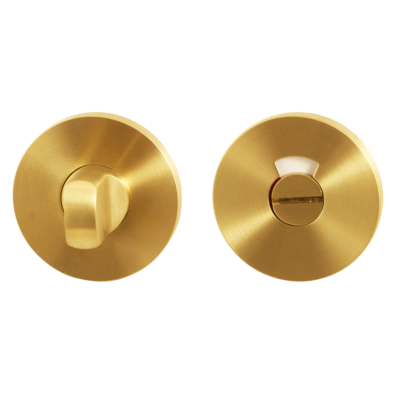 GPF0903VRP4 toiletgarnituur 53x6mm stift 8mm PVD Mat messing Blend met rood/wit indicator. Dit toiletgarnituur is onderdeel van het PVD-programma van GPF bouwbeslag. Op het RVS basismateriaal wordt middels een opdampingsproces de PVD finish aangebracht. De schitterende messingkleur is bestand tegen weersinvloeden en intensief gebruik.