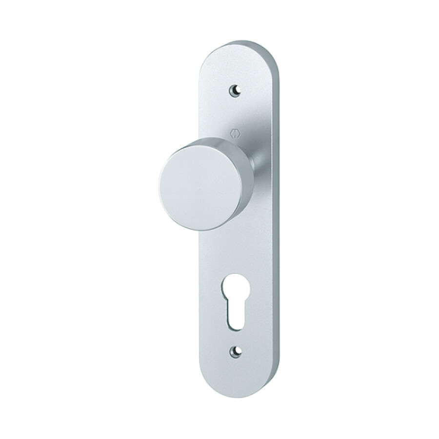 Hoppe knopschild ovaal cilindergat PC 72 - F1. HOPPE aluminium gegoten knoplangschilden voor binnendeuren, schilden met zichtbare (niet meegeleverde) bevestiging.