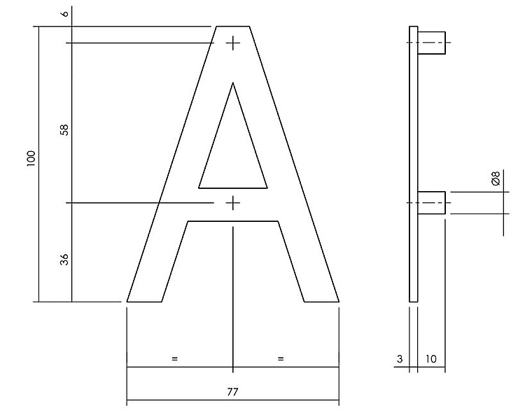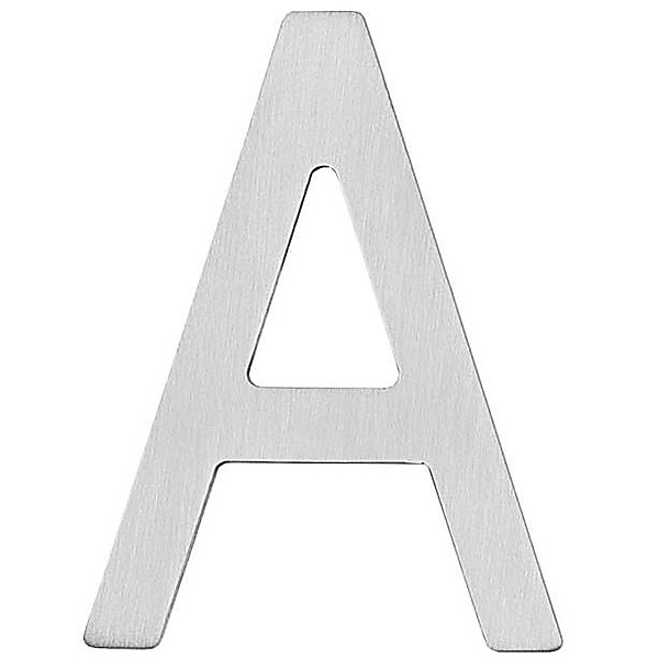 Intersteel Huisletter A 100 mm rvs geborstel. Geborstelde roestvast stalen huisletter A in modern lettertype. Een lange levensduur door het gebruik van massief rvs. Deze huisletter heeft een hoogte van 100 mm en een dikte van 3 mm. Montage is eenvoudig door het bijgeleverde bevestigingsmateriaal.