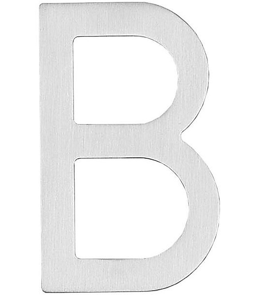 Intersteel Huisletter B 100 mm rvs geborsteld. Geborstelde roestvast stalen huisletter B in modern lettertype. Een lange levensduur door het gebruik van massief rvs. Deze huisletter heeft een hoogte van 100 mm en een dikte van 3 mm. Montage is eenvoudig door het bijgeleverde bevestigingsmateriaal.
