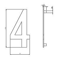 Strakke roestvast stalen huisnummer 4 van Intersteel met een geborstelde finish. Een lange levensduur door het gebruik van massief rvs. Dit huisnummer heeft een hoogte van 150 mm en een dikte van 3 mm. Montage is eenvoudig door het bijgeleverde bevestigingsmateriaal.