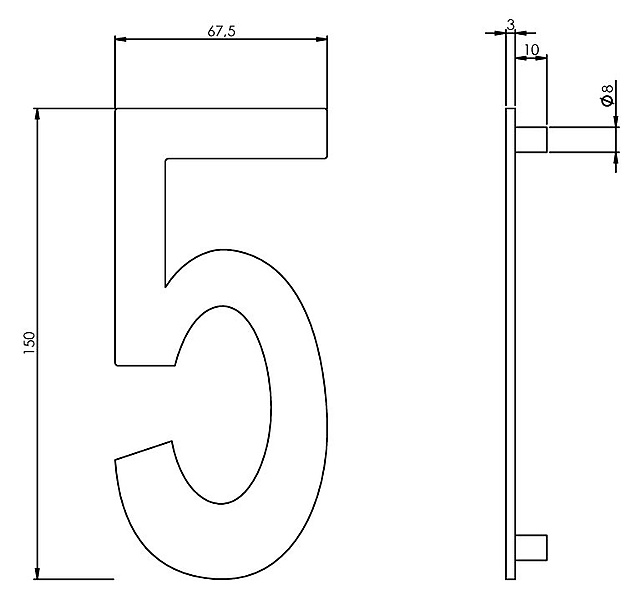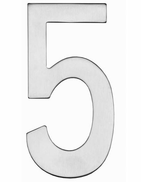 Intersteel Huisnummer 5 rvs geborsteld 150mm. Strakke roestvast stalen huisnummer 5 met een geborstelde finish. Een lange levensduur door het gebruik van massief rvs. Dit huisnummer heeft een hoogte van 150 mm en een dikte van 3 mm. Montage is eenvoudig door het bijgeleverde bevestigingsmateriaal.