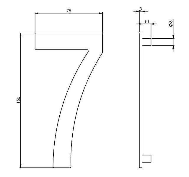 Intersteel Huisnummer 7 rvs geborsteld 150mm. Strakke roestvast stalen huisnummer 7 met een geborstelde finish. Een lange levensduur door het gebruik van massief rvs. Dit huisnummer heeft een hoogte van 150 mm en een dikte van 3 mm. Montage is eenvoudig door het bijgeleverde bevestigingsmateriaal.