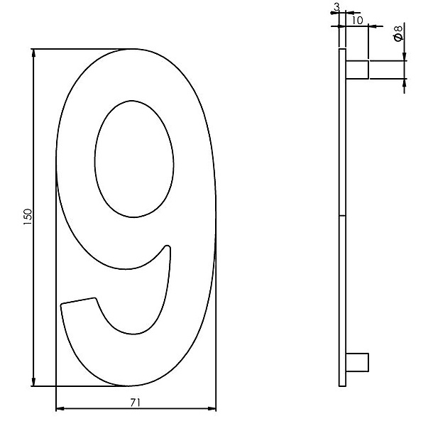 Intersteel Huisnummer 9 rvs geborsteld 150mm. Strakke roestvast stalen huisnummer 9 met een geborstelde finish. Een lange levensduur door het gebruik van massief rvs. Dit huisnummer heeft een hoogte van 150 mm en een dikte van 3 mm. Montage is eenvoudig door het bijgeleverde bevestigingsmateriaal.