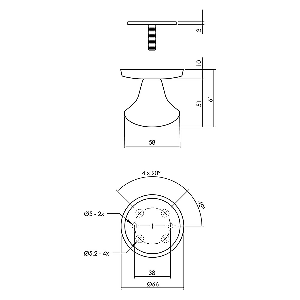 Intersteel Voordeurknop paddenstoel rvs geborsteld 58mm op achterplaat 60mm