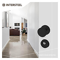 Intersteel voordeurknop rond ø55mm eenzijdige montage aluminium zwart. Deze voordeurknop bestaat uit aluminium en is hierdoor licht van gewicht en sterk tegelijk. De knop is vervolgens voorzien van een zwarte coating. Hij heeft een diameter van 55 mm en de achterplaat is 60 mm. Montage is éénzijdig en eenvoudig met het bijgeleverde bevestigingsmateriaal.