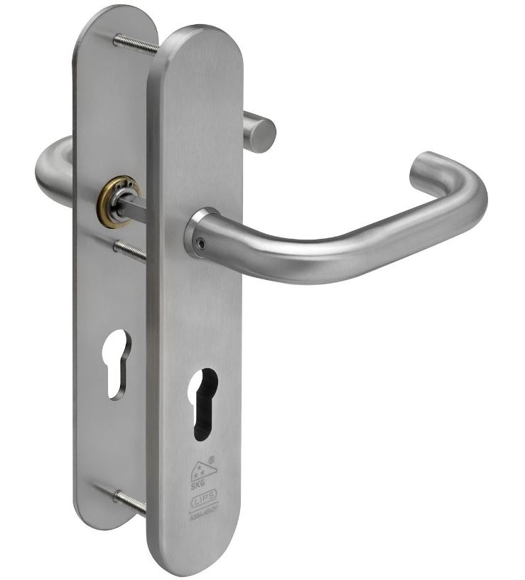 Lips ARU8341-10/10 Kruk-kruk Massief RVS Inbraakwerend SKG*** veiligheidsbeslag PC72. Massief kruk-kruk RVS Inbraakwerend SKG3 veiligheidsbeslag voor zeer intensief en bestand tegen ruw gebruik in de utiliteit. Verkrijgbaar in Blind of PC72mm ARU beslag.