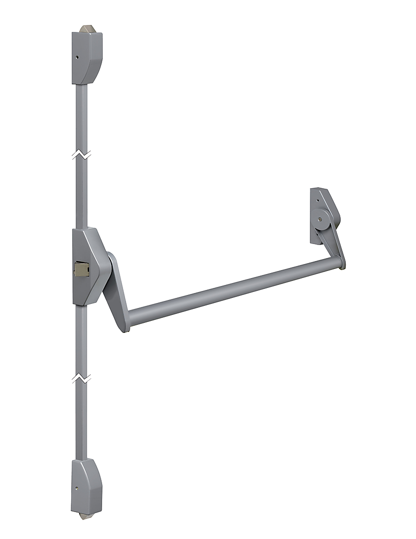 Lips FLAT101M Opbouw paniekstang 2/3 sluitpunten boven en onder model recht Freedom line. Ontgrendelen van vluchtdeuren. Te openen door tegen de horizontale stang te duwen. Bij deze versie kan de horizontale dagschoot worden afgeschermd, waardoor een tweepuntsversie wordt gecreëerd. Bij twee sluitpunten geschikt voor gebruik op enkele en dubbele deuren. Bij drie sluitpunten is deze paniekopener geschikt voor een enkele deur en voorkomt de ingebouwde dagschootblokkering manipulatie van de dagschoot vanaf de buitenzijde.