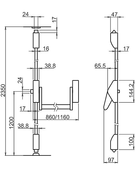 - breedte: 860 mm / 1160mm
