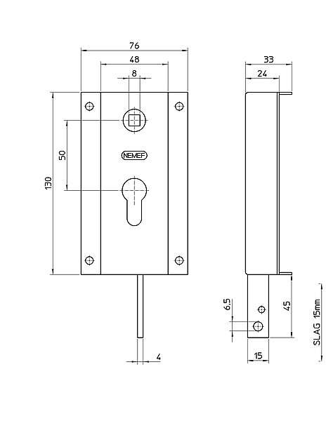 NEMEF Opbouw garagedeurslot 1860 Verticaal met stangenaansluiting verend naar onderen.
