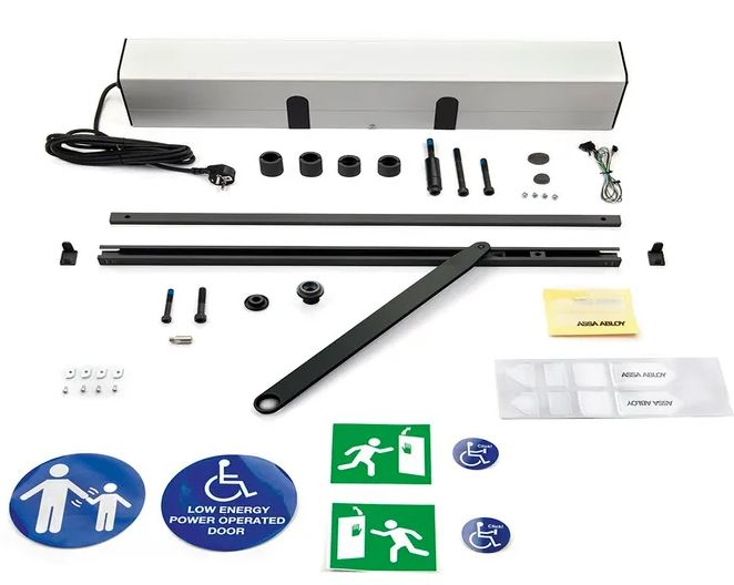 AssaAbloy SW100 draaideuraandrijving inclusief trekarmsysteem of duwarmsysteem. De ASSA ABLOY SW100 draaideurautomaat met met zwarte arm is dé keuze voor wie comfort, veiligheid en gebruiksgemak wil combineren. Dankzij de stille en energiezuinige werking is deze automatische aandrijving ideaal voor retail, horeca, kantoren en zorginstellingen. De SW100 biedt een gastvrije entree die de doorstroming verbetert en de toegankelijkheid vergroot, zonder in te leveren op design of betrouwbaarheid.