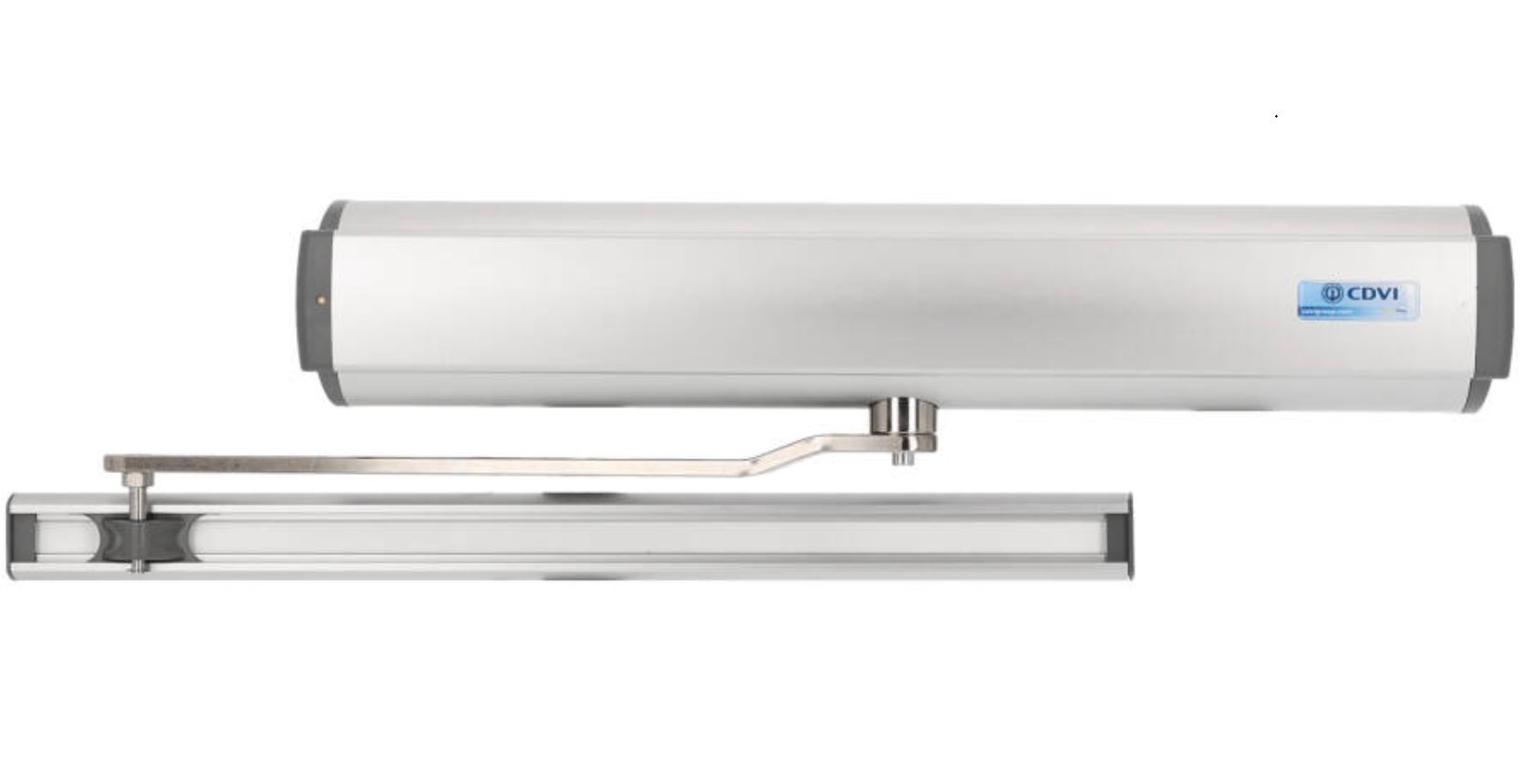 CDVI Digiway deurautomaat universele arm voor enkele deur. De Digiway deurautomaat van CDVI heeft een universele arm, die deuren tot 120 kg zowel dicht kan trekken als open kan duwen. De functie ‘Wind stop’ zal de deur gesloten houden wanneer er wind tegen drukt. De optie ‘obstakeldetectie’ wordt voorzien als veiligheidsmechanisme: indien de deur dicht gaat, maar er bv. een persoon in de deuropening staat, dan zal de deur automatisch weer open gaan.
