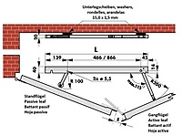 Gegalvaniseerd staal, max. 160 kg per deurblad, kort van ca. 0.75m tot 1m per deurblad en lang van 1m tot 1,5m per deurblad, benodigde ruimte boven de deur min. 20 mm, werkhoek max. 115°,
