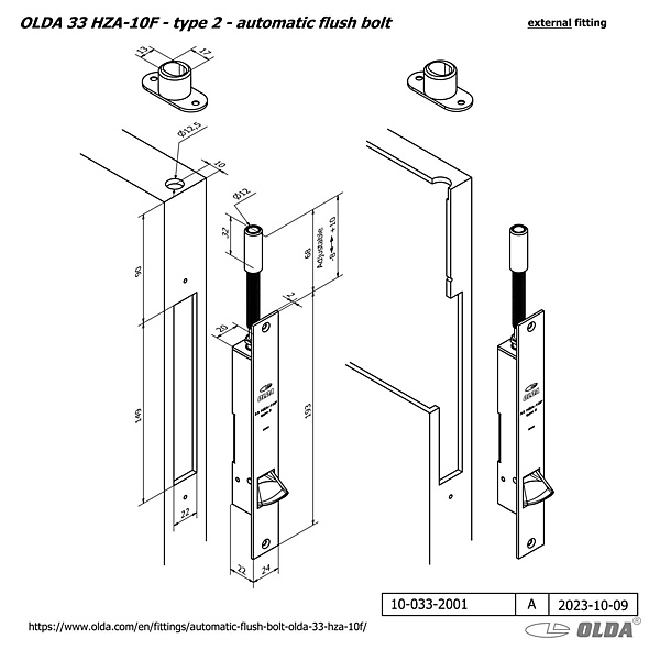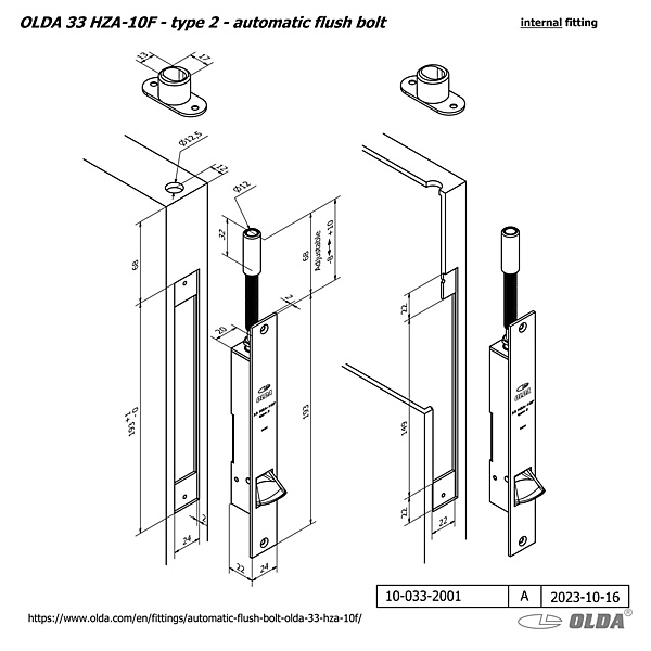 OLDA 33 HZA10F Automatische kantschuif type 1 en 2 DM 10mm voor staal aluminium. Ben je op zoek naar een manier om de passieve deur van dubbele deuren automatisch te ver- en ontgrendelen wanneer de loopdeur wordt geopend? Bijvoorbeeld voor de toepassing in winkels, bedrijven of sportcentra? Dan is de OLDA 33 HZA 10F automatische kantschuif met doornmaat 10 mm een goede oplossing.