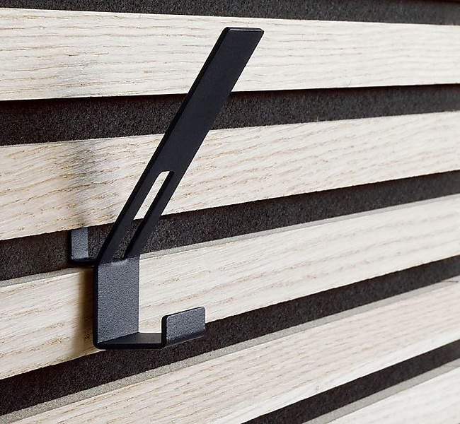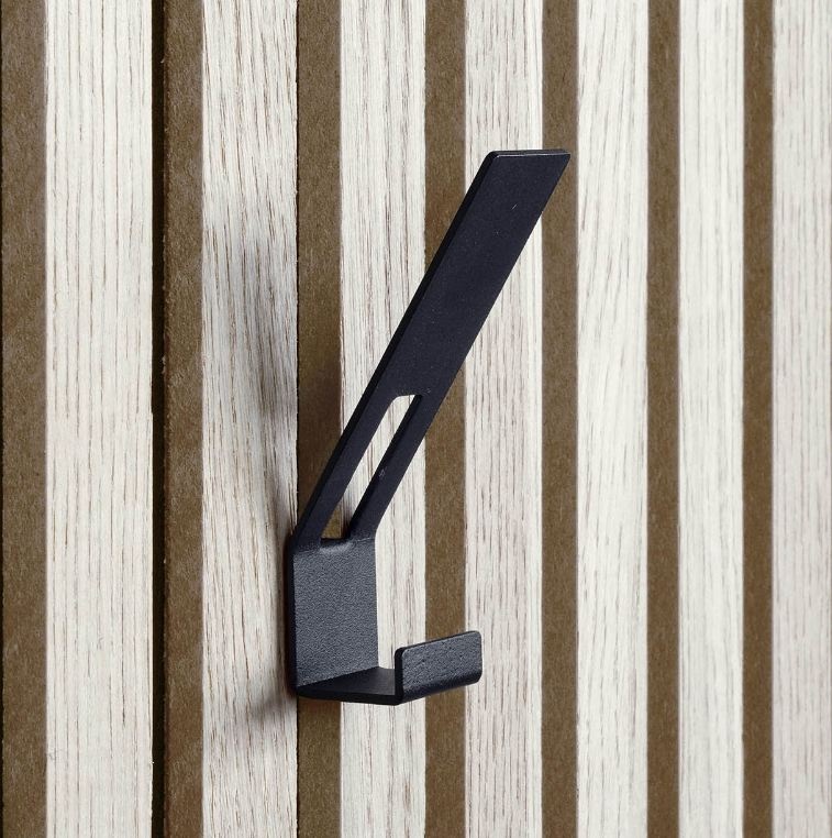 Deze zwartgelakte stalen designhaken zijn een voordelige oplossing van hoogwaardige kwaliteit waarbij het stijlvolle karakter van het aku paneel dankzij de meegeleverde zwarte schroeven wordt behouden. De schroef valt namelijk volledig weg in het isolerende materiaal.
