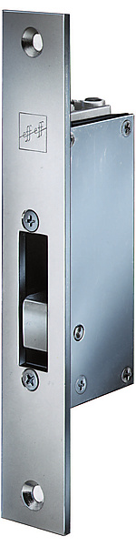EffEff 310 Ruststroom schuifdeuropener 3000N 12V Of 24V. Deze spatwaterdichte opener is bestemd voor het ontgrendelen van schuifdeuren en is universeel toepasbaar. Het is een combinatie van een sluitdeel voor plaatsing in de deur en een elektrische opener die in het kozijn wordt geplaatst. Het sluitdeel is uitgerust met een zelfvergrendelende haakschoot, die bij het sluiten van de deur in de opener valt. De deur is mechanisch te openen door middel van de cilinder.