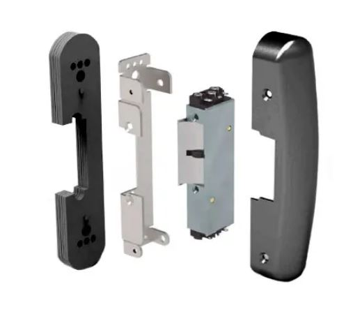 Elektrischer deuropener opbouwset voor paniekdeuren paniekbalken en oplegsloten. Complete opbouwset voor montage van de elektrische sluitplaat op het kozijn. 8-12V