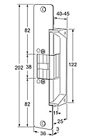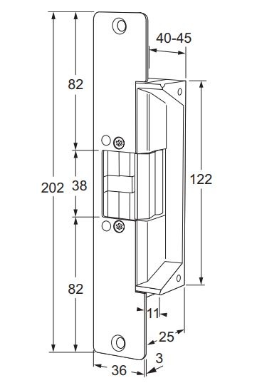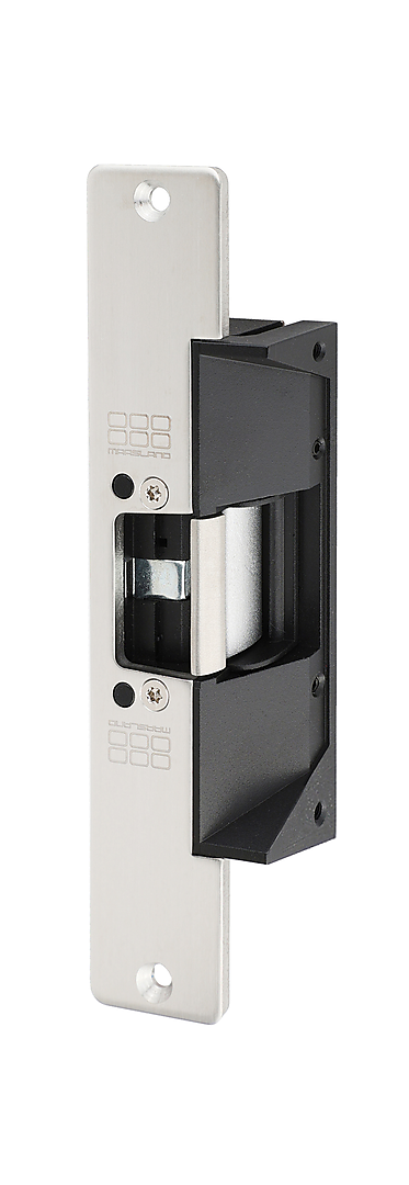 Maasland deuropener 420PTU elektrisch met korte sluitplaat met verstelbare schootvanger. Speciale elektrische deuropener die in het kozijn tegenover de dagschoot van het Maasland centraalslot 4960 of Nemef centraalslot 649-47 wordt ingebouwd om deze te vergrendelen of te ontgrendelen. Doordat het mechanische slot voorzien is van een dagschootblokkering en de elektrische deuropener voorzien van een speciale ANSI lip is de dagschoot niet terug te duwen als de deur is vergrendeld (niet te “flipperen”). Hiermee voldoet deze deuropener aan de richtlijnen Politie Keurmerk Veilig Wonen voor toegangsdeuren gemeenschappelijke ruimten. Voorzien van 5 mm verstelbare schootvanger.