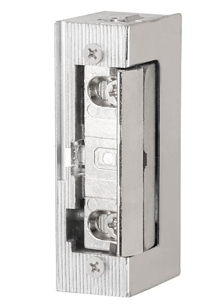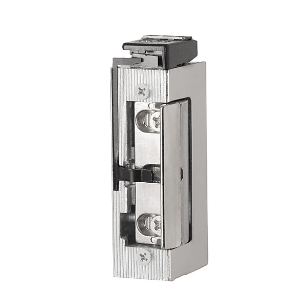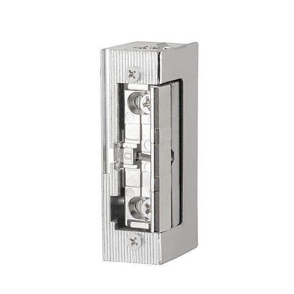 Maasland inbouw arbeidsstroom elektrische deuropener voorzien van axiale 4 mm verstelbare schootvanger welke buiten de behuizing draait. De deuropener wordt in het kozijn tegenover de dagschoot van een mechanisch slot ingebouwd om deze te vergrendelen of te ontgrendelen. Geleverd zonder sluitplaat.