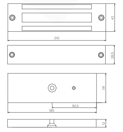 - Afmeting grendel : 204 x 42 x 32 mm. (l x b x d)