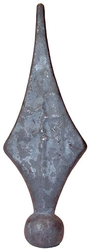 Hekpunt HP211 in ruitvorm en met een spitse punt. Hekpunt 60x175mm en ronde voet van 30mm. Warmgesmede hekpunt, goed verlas- en verzinkbaar.