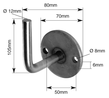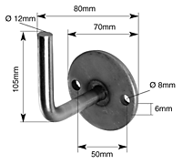Leuninghouder muurmontage rond 70mm in onbheandeld staal