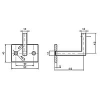 Rechthoekige leuninghouder in onbehandeld staal