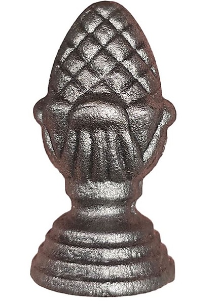 Paalkop met dennenappel op ronde voet. Warmgesmede paalkop granaatappel is goed verlasbaar en verzinkbaar verkrijgbaar in diverse maatvoeringen en met een ronde voet
