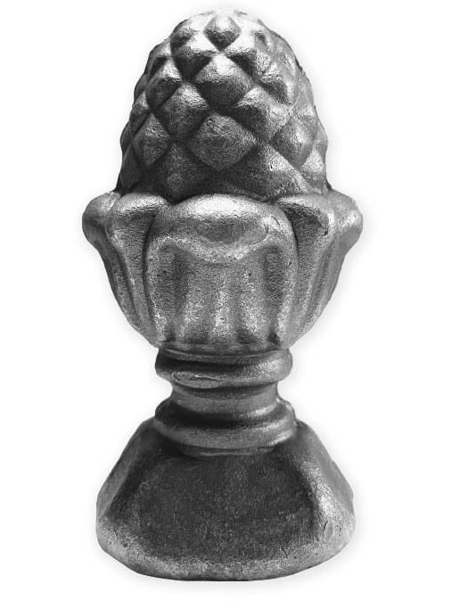 Paalkop dennenappel met vierkante voet verkrijgbaar in verschillende afmetingen. Warmgesmede paalkop dennenappel met voet. Paalkoppen granaatappel zijn goed verlasbaar en verzinkbaar op sierpoorten voor een unieke uitstraling van uw hekwerk