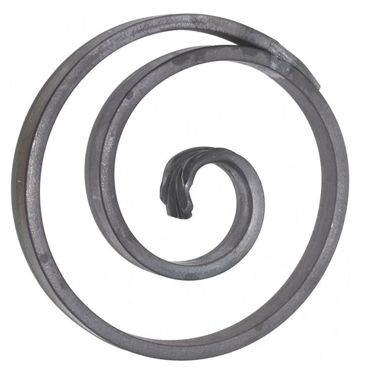 Grande Forge ronde stalen ring met krul rond 130mm. Diverse ronde ringen met siereindkrul. Sierkrul voor verwerking in onder andere poorten en hekwerken