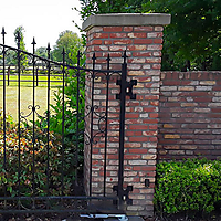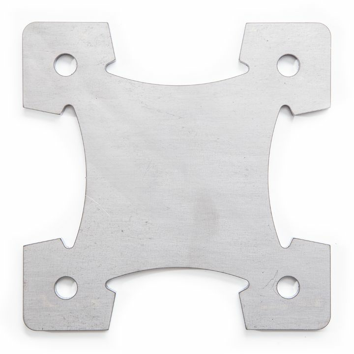 Muurplaat met montagegaten in de formaten 210x210x5 mm en 140x140x5mm Wanneer een poort tussen muren is geplaatst biedt een muurplaat een uitstekende oplossing. De scharnieren kunnen op de muurplaat worden gemonteerd, waarna de poortvleugels direct aan de muur kunnen worden bevestigd zonder dat poortpalen nodig zijn.