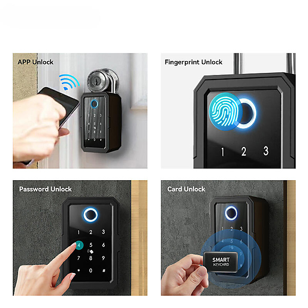 Sleutelkluis hangslot met vingerprint te openen, APP, code of kaart. De Smart Box sleutelkast kan worden geopend met een vingerafdruk, PIN code, Bluetooth en RFID. Sleutelkluis en hangslot in 1 te openen met vingerprint. De keybox is dé ultieme oplossing voor het veilig en gecontroleerd opslaan van RFID badges, huis- en autosleutels, en andere kleine waardevolle voorwerpen. Dankzij de integratie met het Tuya platform is de Smart Box eenvoudig te beheren via Bluetooth of, wanneer gekoppeld aan een Tuya Gateway, via een internetverbinding. Dit biedt maximale flexibiliteit in gebruik.