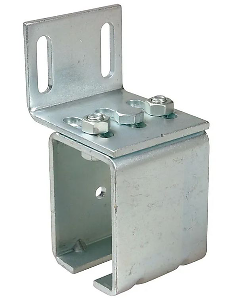 IBFM Muursteun voor hangrail. Deze muursteunen worden toegepast bij hangpoorten en zorgen er voor dat de hangrail voor de schuifpoort tegen de muur bevestigt kan worden. Deze muursteunen voor bevestiging van de hangrails zijn verkrijgbaar in de varianten Small, Medium en Big.