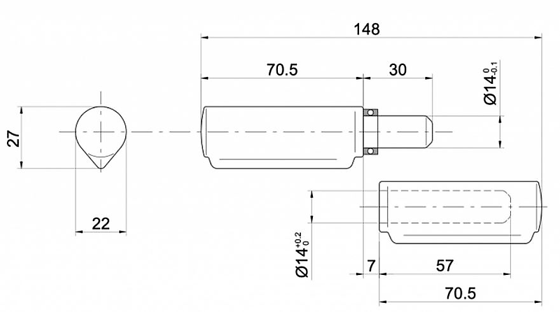 - Met ijzeren pen en kogellager: