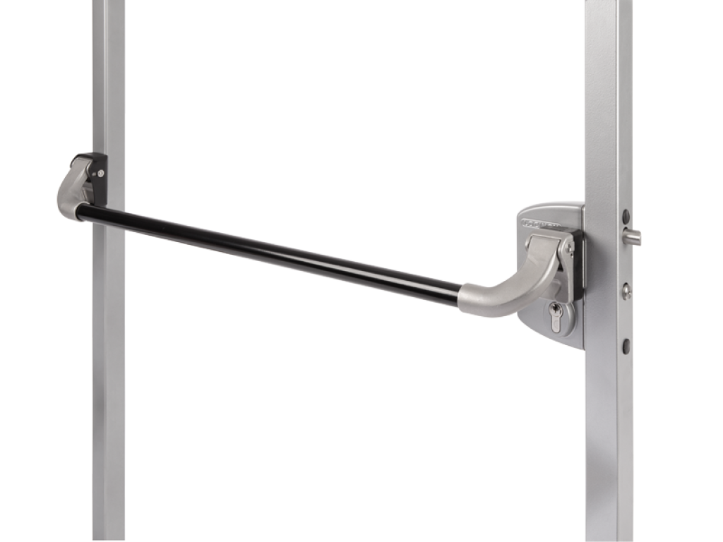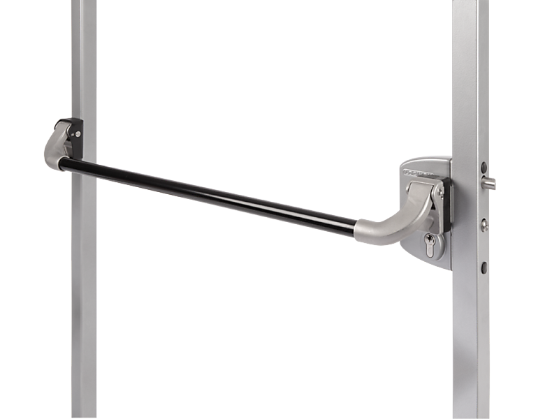 - 1.: Geanodiseerde, zwarte Pushbar in aluminium met roestvrijstalen mechanisme