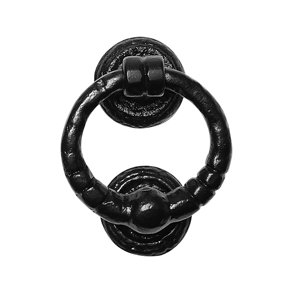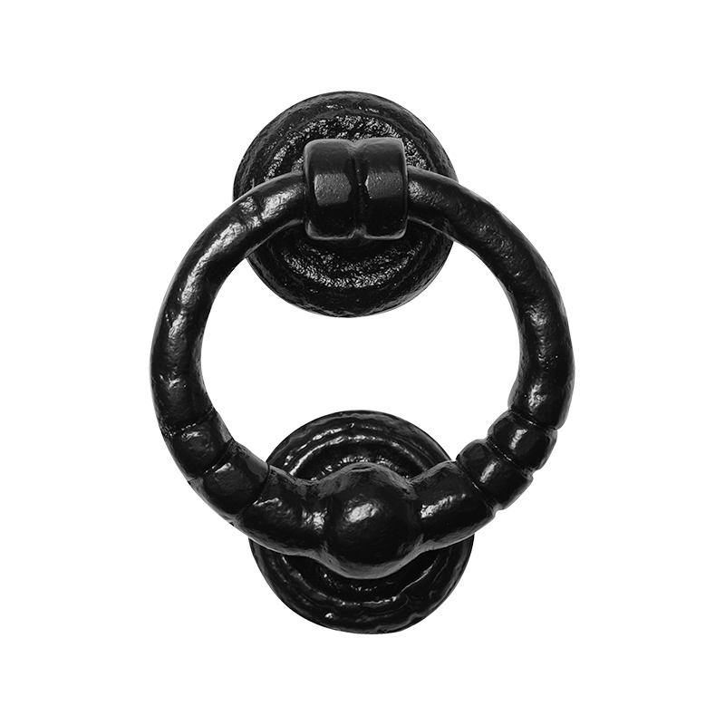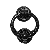 Zwarte smeedijzeren deurklopper ring 127mm KP0846. Zwart smeedijzer is door de aantrekkelijke vormen en de diep zwarte kleur van alle tijden. Deze deurklopper is op ambachtelijke wijze gesmeden. Kirkpatrick behoort tot één van de hoogste kwaliteit smeedijzerfabrieken in Europa.