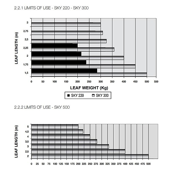 - Uitvoering poortvleugel: tot 2,25 meter of max 275 kg, tot 3 meter of max 500 kg, tot 5 meter of max 500 kg,