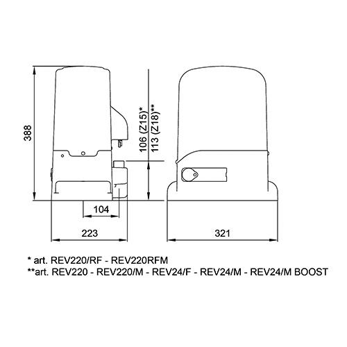 DEA Schuifpoortaandrijving REV 24V of 230V poorten tot 1400KG. De DEA REV-automatisering voor schuifpoorten is de DEA-oplossing die vooral is bedoeld voor appartementsgebouwen en bedrijven die frequent zware poorten tot 1400 kg openen en sluiten.