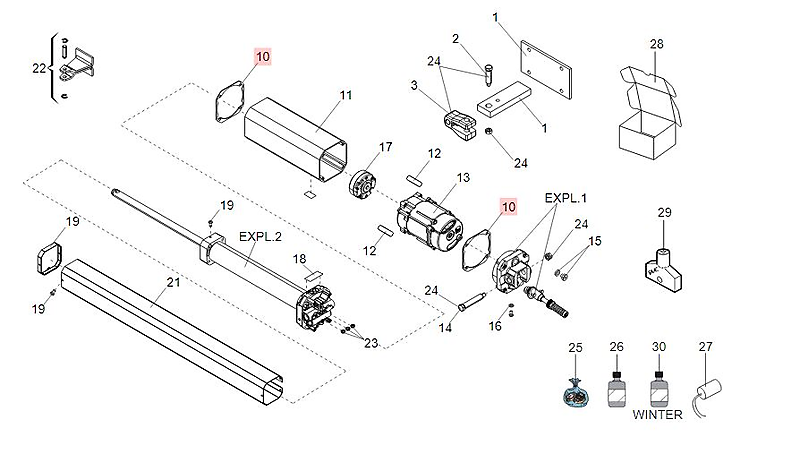 Faac pakking 7099015 voor poort motoren. Pakkingen nummer 10 ter vervanging bij olie lekken van bestaande poortaandrijvingen. GASKET FOR TANK 84,7 X 84,7 mm