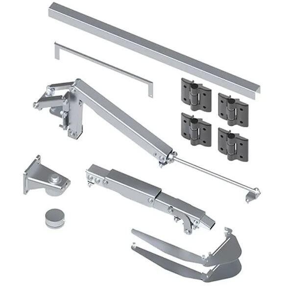 - De Bi-Folding kit wordt compleet geleverd met alle benodigde onderdelen voor de montage van één vouwpoortvleugel. De set bevat: