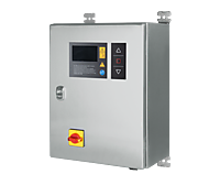 FEIG TST FU3F-CSGH frequentiebesturing snelloopdeur. 4 kW3-fase frequentiebesturing met brakechopper in stalen behuizing tot 4 kW (10 A) met 100% inschakelduur, 3500 mA/24V voeding voor accessoires en 24V remstroomcontrole (EN13849).