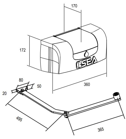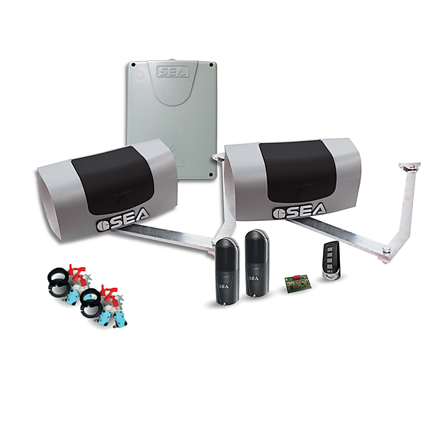 SEA KIT GER 230V of 24V. SEA Knikarm poortopener met standaard knikarm en einderitschakelaar knikarm poortaandrijving. Poortmotor met knikarm voor poortvleugels tot 3 meter