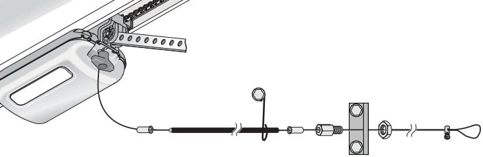 Sommer Noodontgrendelingsset 5000mm Base+/Pro+/Tiga+ garagedeuropeners. Ontgrendelingsmechanisme met 5000 mm staalkabel en 4500 mm kabelhuls voor het ontgrendelen van de motor via het slot van de garagedeur.