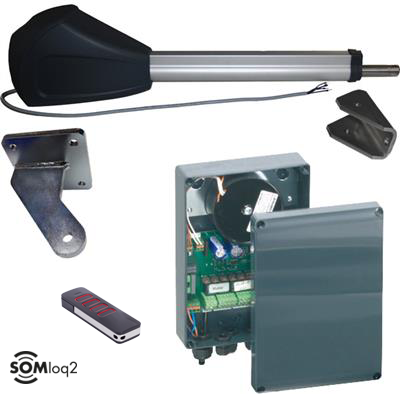 Sommer Twist XL kit 1 vleugel met Pearl Vibe zender. Kit met 1 elektromechanische aandrijving op 24 Vdc voor vleugelbreedtes tot 7000 mm, een besturing en 1 zender met 4 knoppen. Eenvoudig in te stellen eindschakelaars met Reed-sensoren voor openen en sluiten.