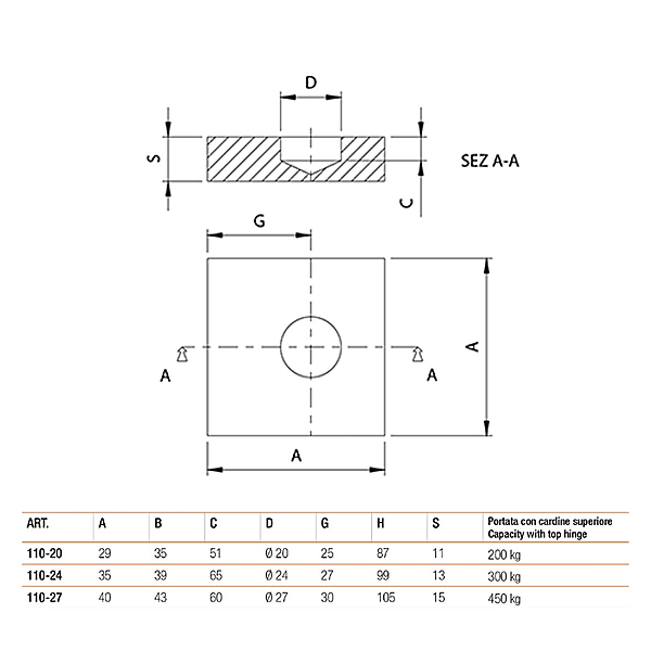 Comunello basisplaat voor draaipunt niet gelagerd Ø20,5 mm