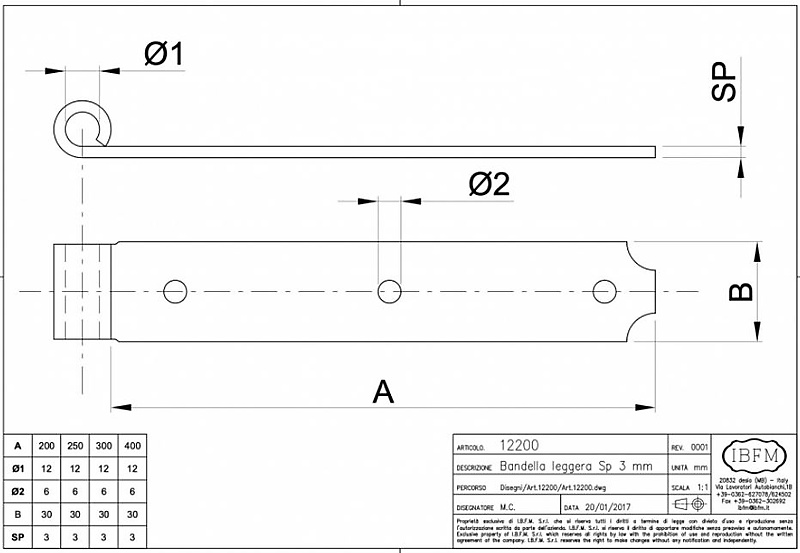 Art 12200200N Lengte: 200x30x3 mm Ø12 mm