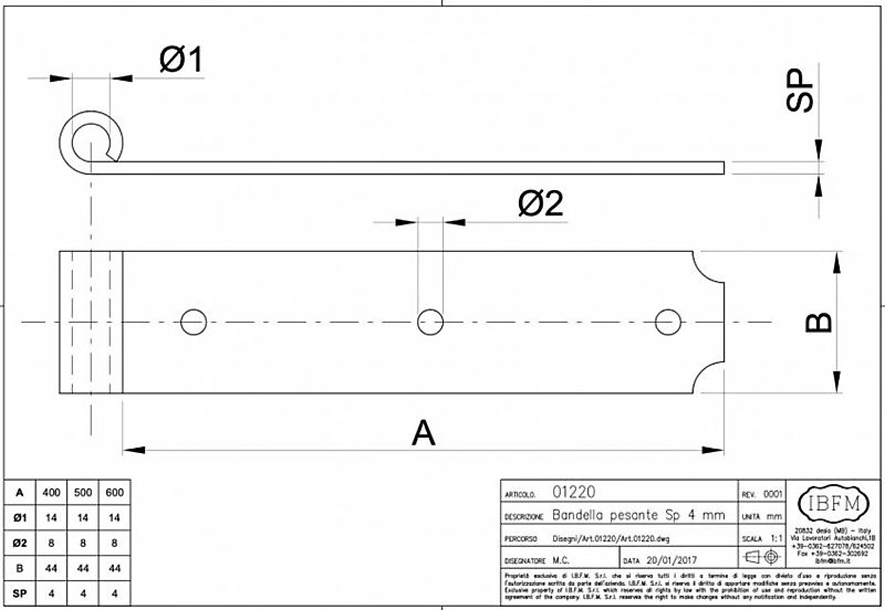 Art 1220400N Lengte: 400x45x4 mm Ø14 mm